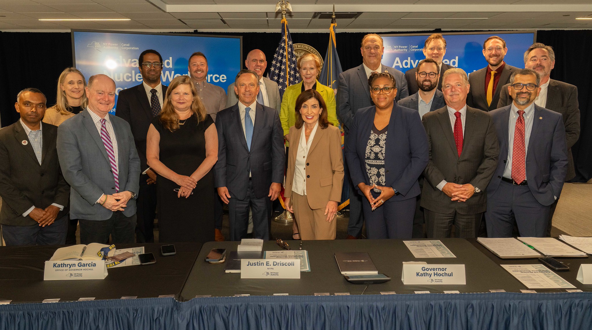 Guvernérka Hochul se připojila k New York Power Authority, odborovým předákům a představitelům pracovních sil k diskusi u kulatého stolu o rozšiřování pokročilých jaderných pracovních sil v New Yorku. Zdroj: NYS Governor