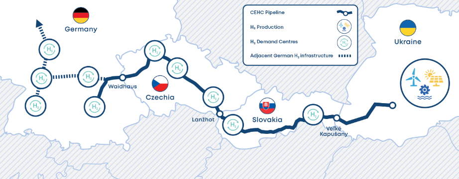 Druhým projektem je Středoevropský vodíkový koridor (Central European Hydrogen Corridor, CEHC), jehož cílem je umožnit přepravu obnovitelného vodíku vyráběného na Ukrajině do míst spotřeby na Slovensku, v České republice a Německu. Po dokončení v roce 2032 by měl mít celkovou délku 1351 km.